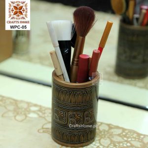 Pen Console - Brush Holder Round - Black Lacquer Art